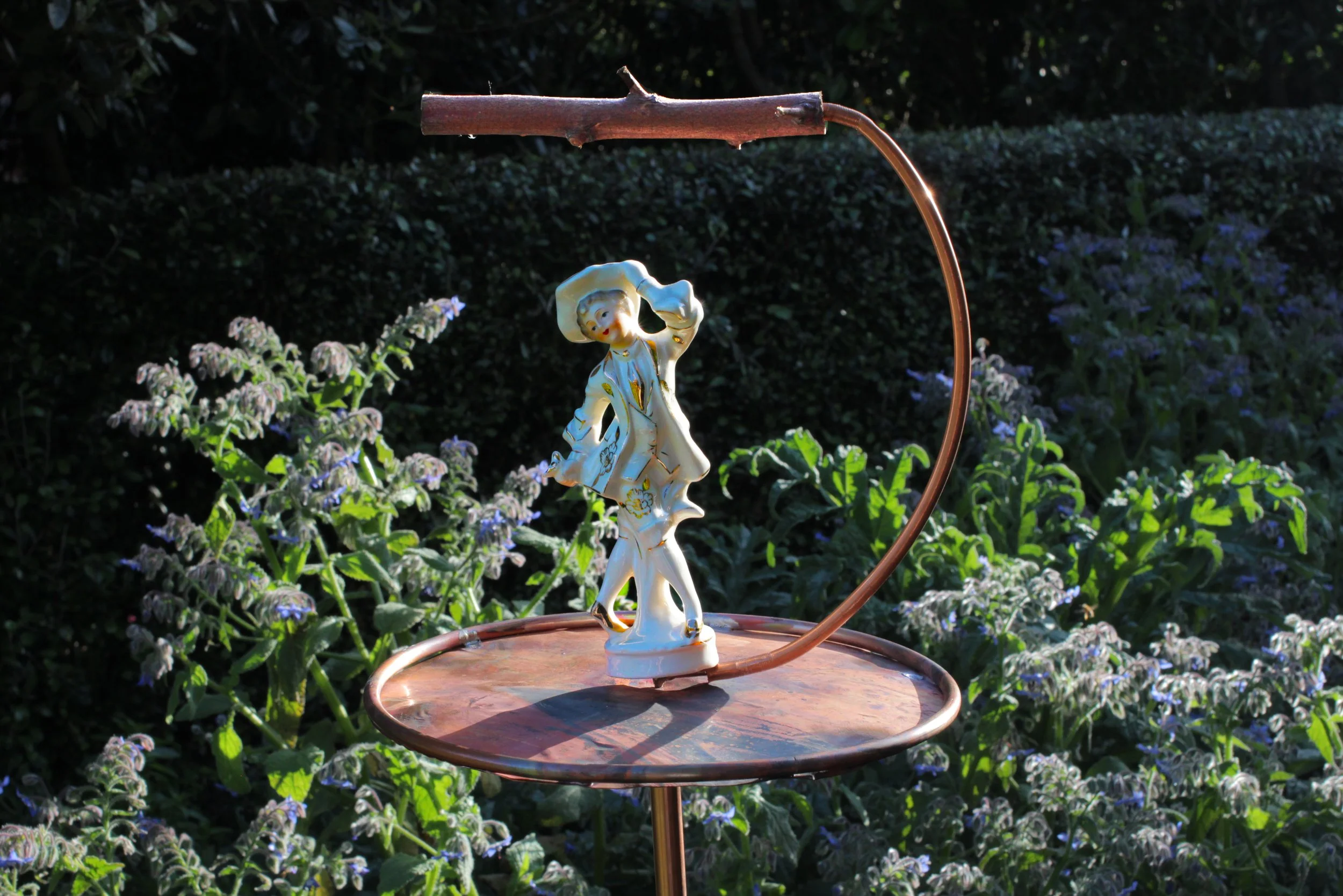 We also made twelve single bird feeders which stand on 2m copper tube. Available for purchase